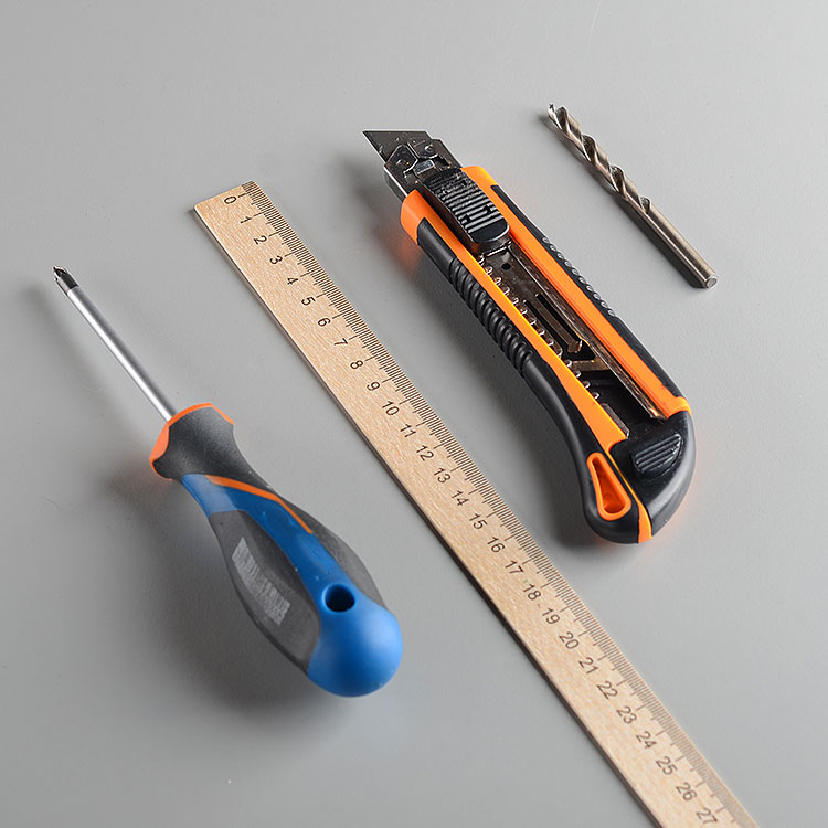 Вам потребуются: линейка, резак, отвертка и специальный пробойник для кожи диаметром 4 мм. Если пробойника нет, можно использовать сверло того же диаметра.