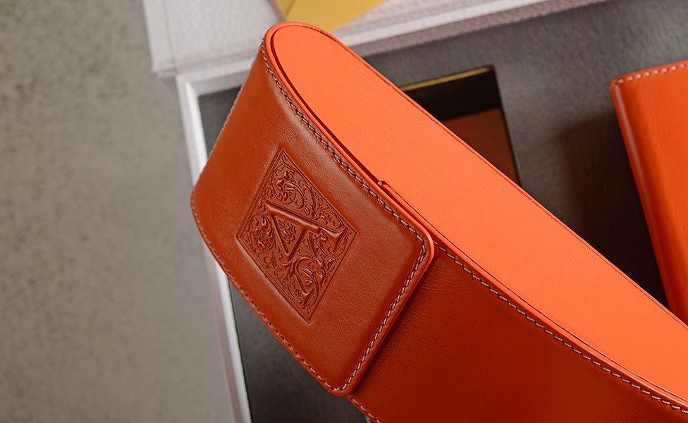 Коллекция «Гефест», названная в честь древнегреческого бога огня и ремесла, подчеркивает индивидуальность получателя. Подарочный набор доступен в эксклюзивном оранжевом цвете. Количество ограничено.