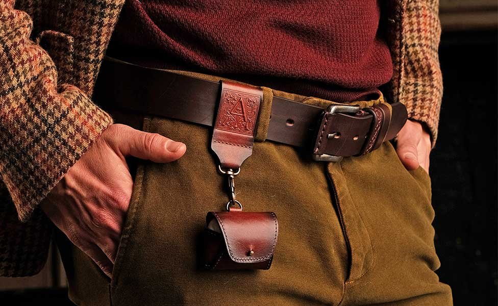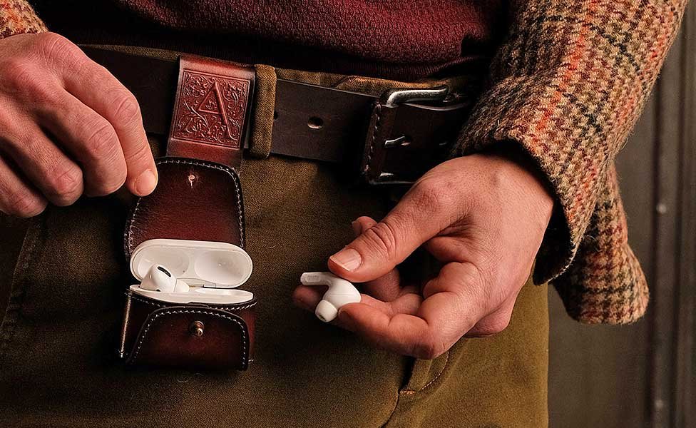 Отличный подарок для владельца легендарных наушников — кожаный чехол из кожи ручной выделки с монограммой владельца. Конструкция чехла позволяет носить его на ремне.