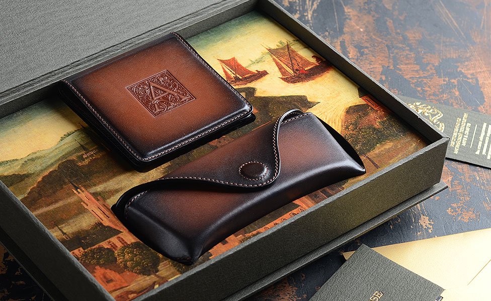 Эстетичный дуэт из натуральной кожи: строгий футляр для очков и лаконичная ключница с монограммой владельца.