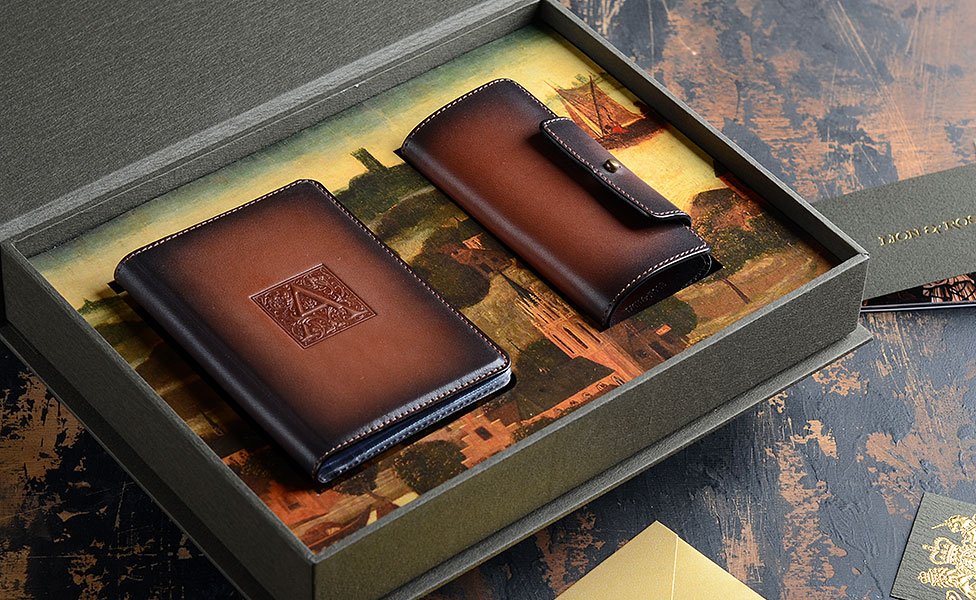Подарочный набор с элегантными аксессуарами: обложка для водительских документов и ключница.